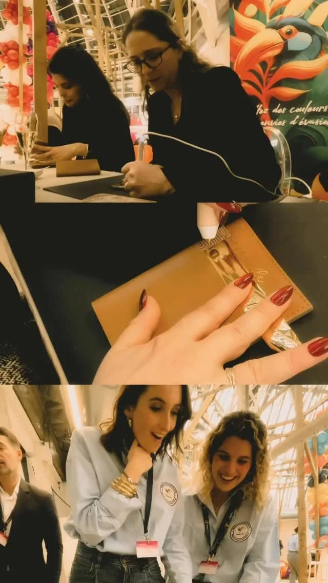 Gravure en calligraphie de prénoms, initiales ou messages courts sur des bougies de la marque Chaumet lors d’un événement d’appréciation client en boutique à Bordeaux.