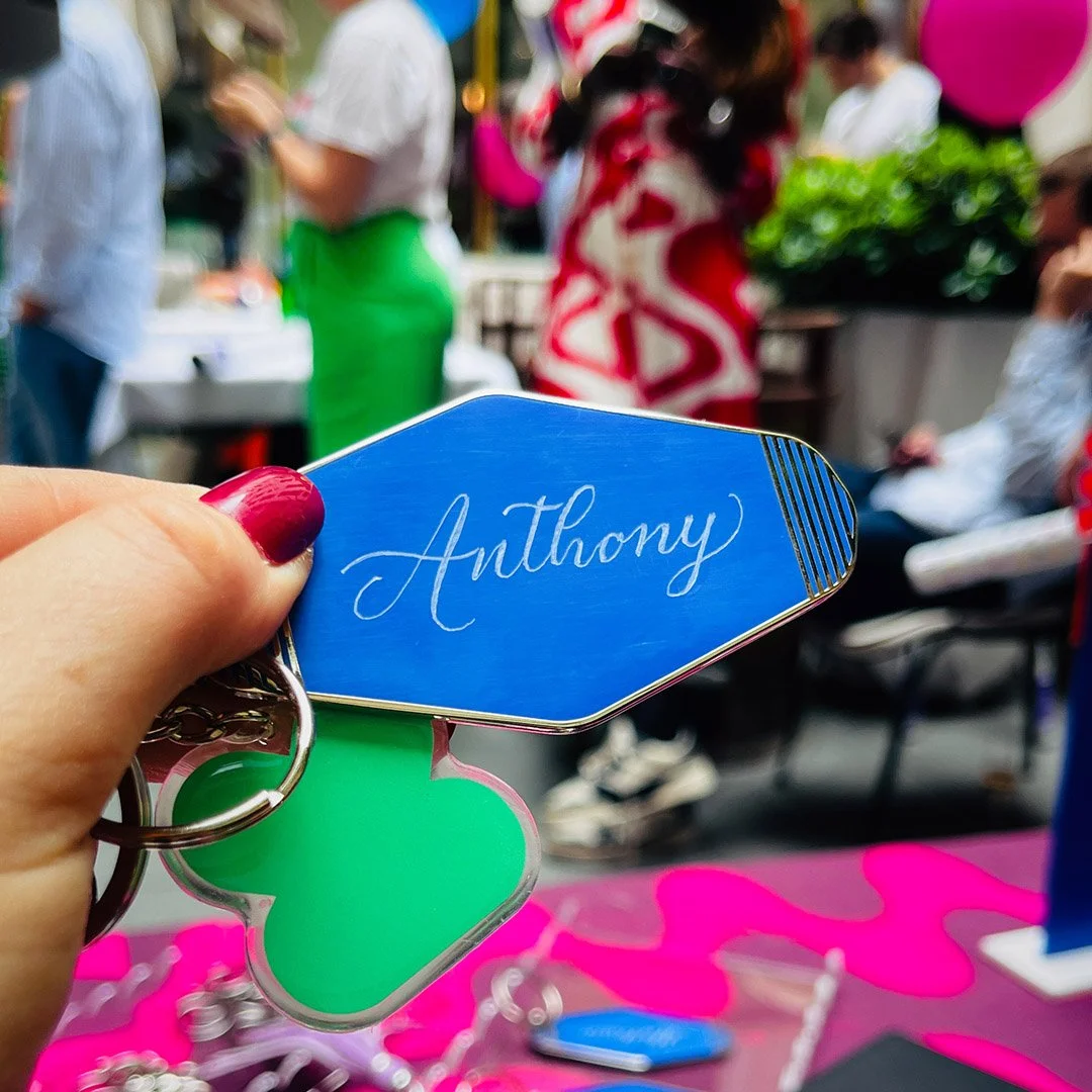 Live Calligraphy engraving on keychains x Figma - Corporate event